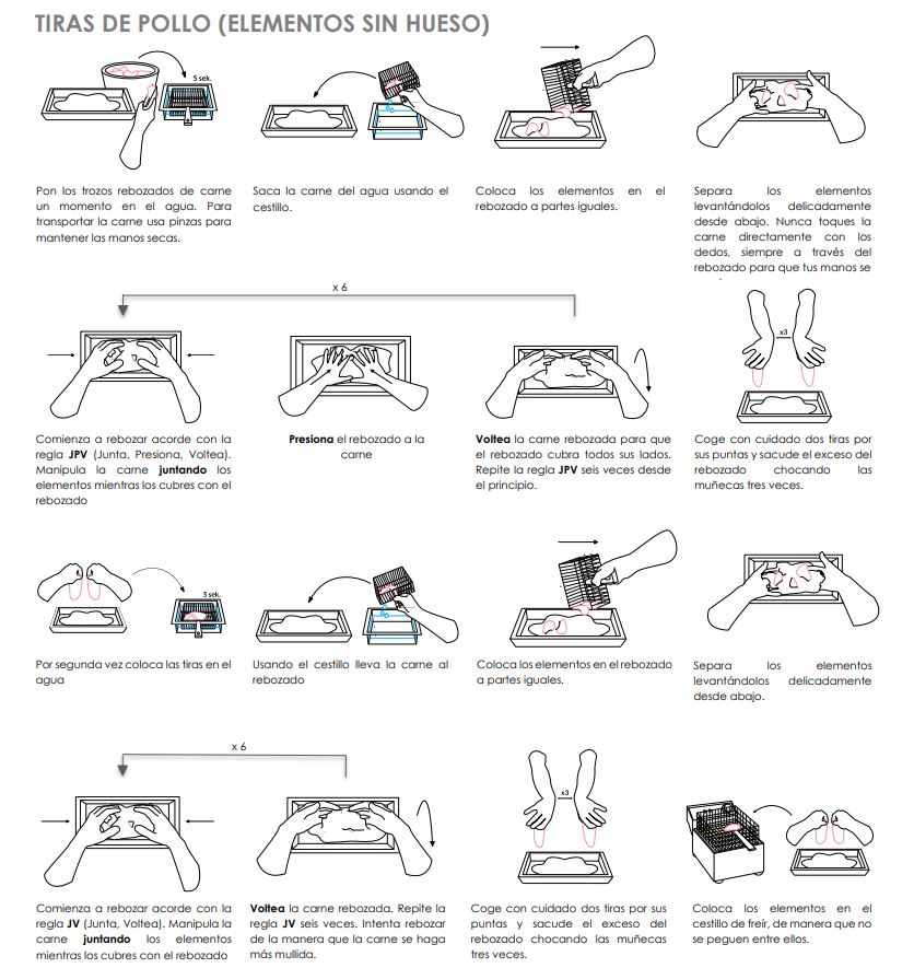 „Puisque nous préparons la panure de la viande marinée, nous pouvons préparer des morceaux de poulet panés de façon continue sans faire de grande production à l’avance. Le processus de paner lui-même est rapide aussi. Il suffit d’utiliser la panure prête à l’emploi et de l’eau froide. C’est clair qu’il faut s’entraîner à faire s’effilocher la panure et à la faire ressembler à une panure aux céréales, mais plus vous travaillez avec la panure prêt à l’emploi, plus cela semble facile. Un grand avantage pour moi est le manque de liant ou d’œuf qui salissent les mains et rendent la préparation de la panure difficile. Elle ajoute: J’apprécie aussi le fait que le processus soit répétitif. Surtout lorsque la rotation des effectifs est forte. Il suffit d’apprendre à l’employé la préparation de la panure en le supervisant une fois pour obtenir le travail répétitif et la panure toujours appétissante!”